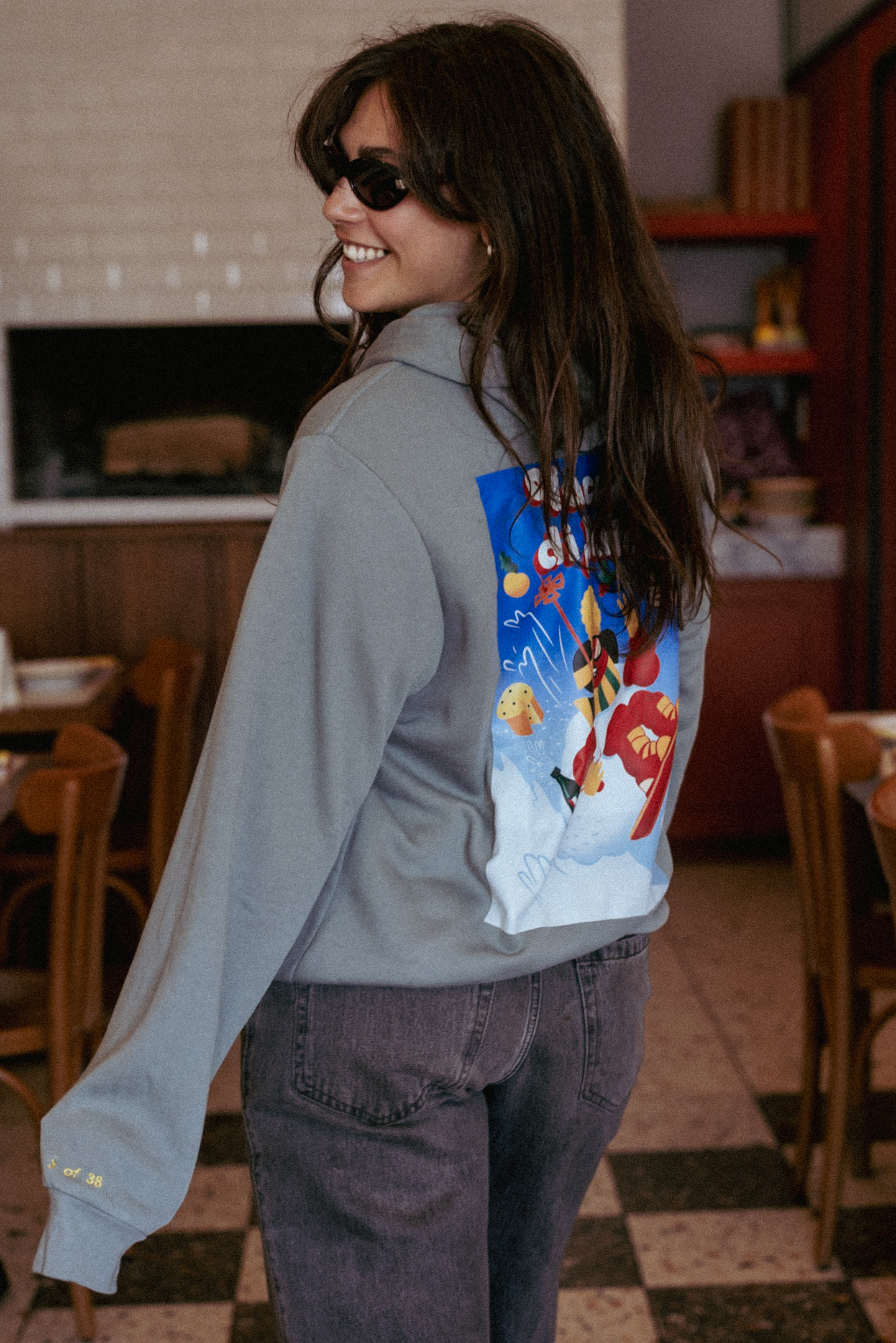 Elvira’s Limited Edition Xmas 2025 incredibly soft and relaxed unisex pullover blue storm hoodie, it feels like Nonna Elvira herself hugging you!